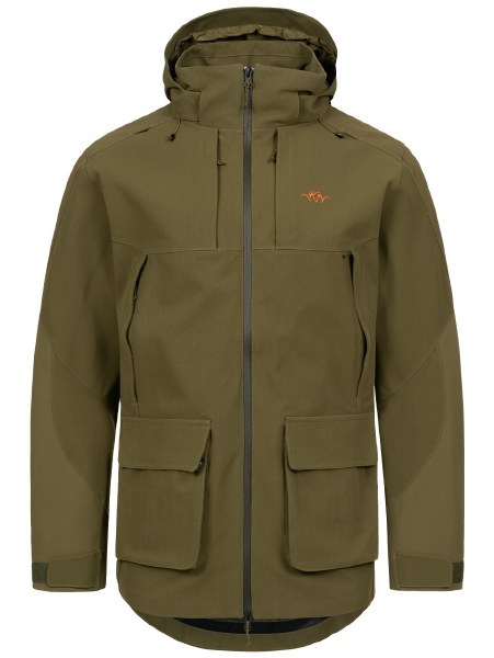 The full feature pocket storage system covers your complete hunting needs. 2-layer waterproof and windproof jacket, high abrasion and durable Cordura® face fabric combined with reinforcements in high-usage zones, stretch fabric insert over the shoulder blades and triceps area for extra freedom of motion, 2 top walkie-talkie zip pockets with antenna outlet, 2 zipper hand warmer pockets with brushed lining, 2 lower pockets right side with ammunition loops, large lower back pocket with 2-sided zipper entry, side underarm ventilation for fast heat and moisture release, adjustable cuffs for snug fit, stretch brushed mesh lining over shoulder blades for higher breathability and freedom of motion, lower hem adjustable.